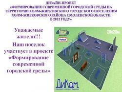 В рамках муниципальной программы «Формирование современной городской среды на территории Холм-Жирковского городского поселения» на сайте Администрации будет размещено голосование по выбору благоустройства общественной территории на 2022 год: «Энергия Спорта» (скейт-парк, воркаут) или Сквер воинам-Афганцам.