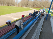 25 апреля прошёл субботник по прокраске трибун стадиона "Здоровье", уборке крупного мусора, окраске деревьев