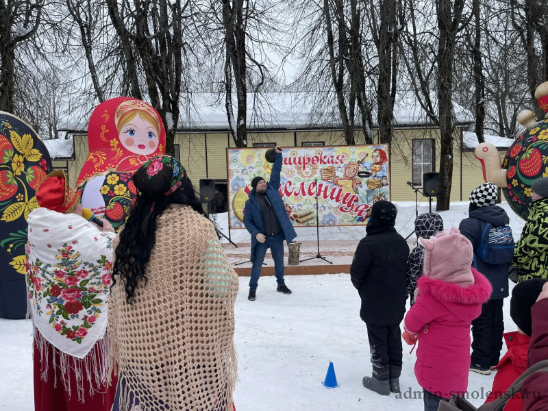 Сегодня, 22 февраля, на площади Ленина в поселке Холм-Жирковский проводили Масленицу